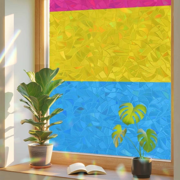 Color Block Window Privacy Film Rainbow Static Cling Stain Glass Window ...