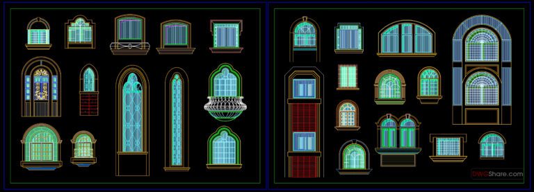 463.Detailed AutoCAD Drawings Of Doors, Windows For Download