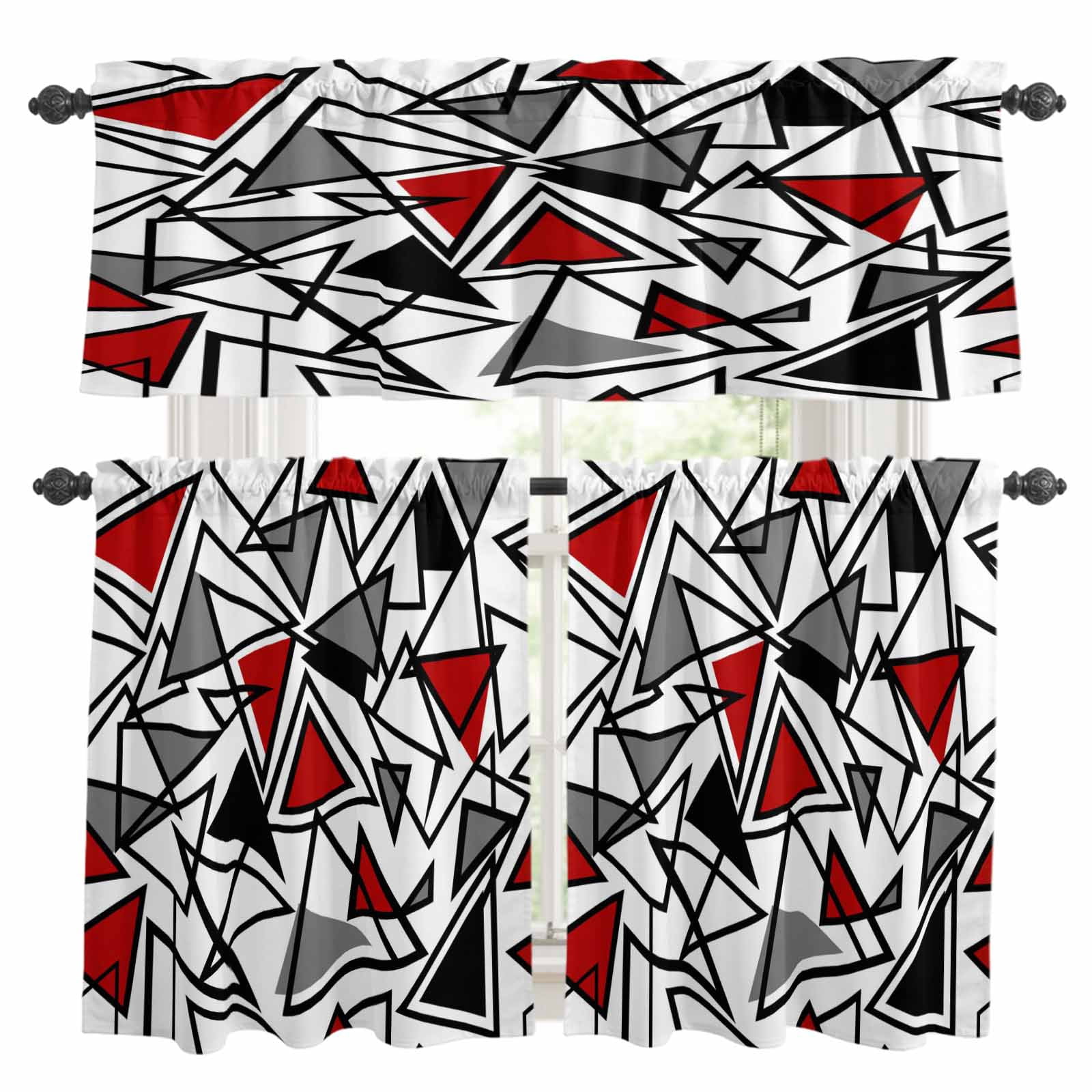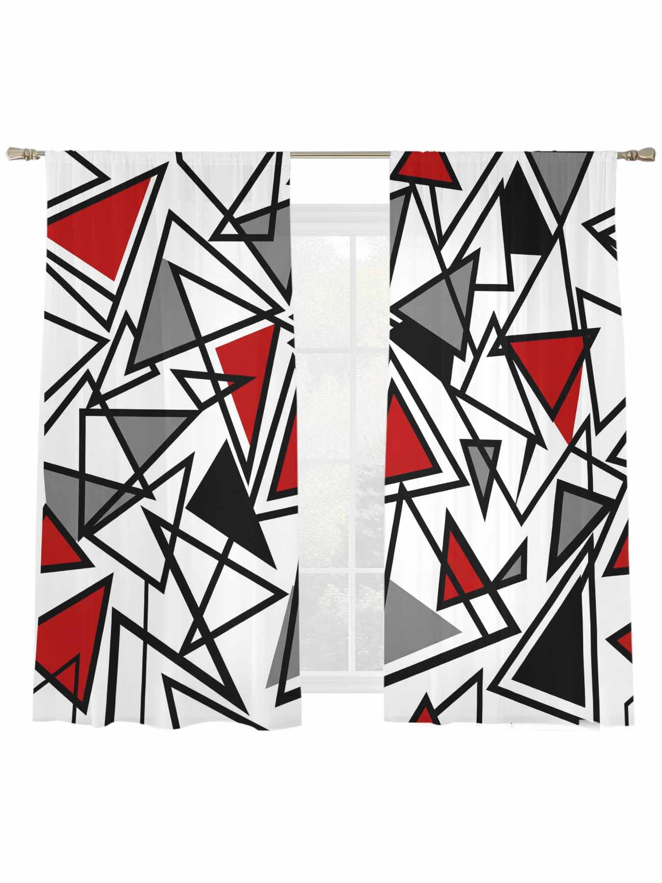 Abstract Lines Sheer Curtains 2 Panels Set Black Gray Red Triangle ...