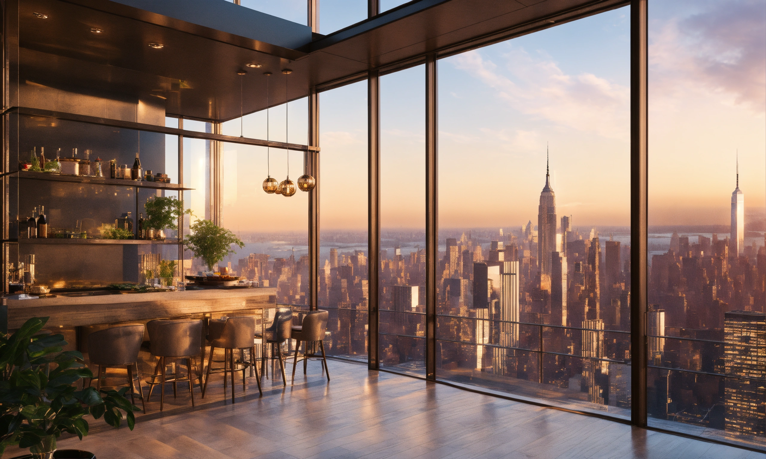 Lexica - Photo of luxe penthouse with high windows and breathtaking nyc ...