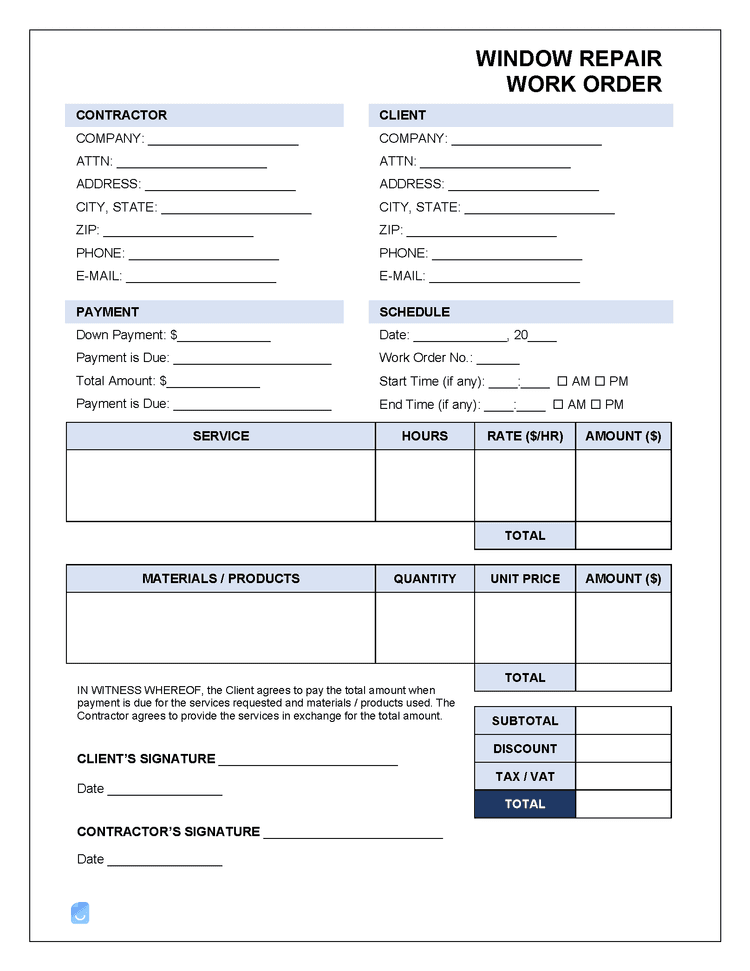 Window Repair Work Order Template | Invoice Maker