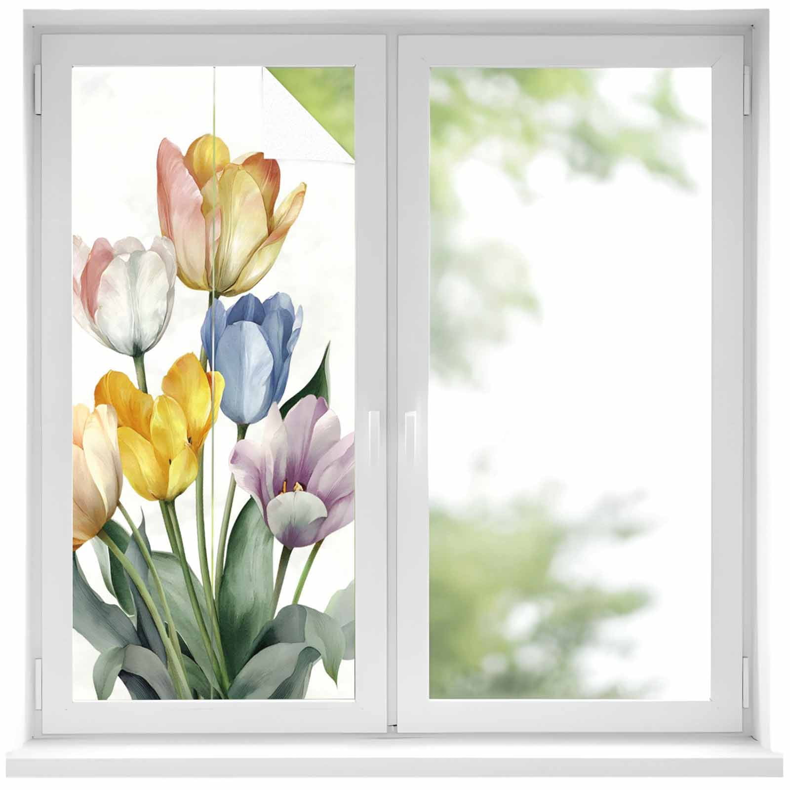 Window Privacy Film Colorful Tulips Floral Stained Glass Window Film ...