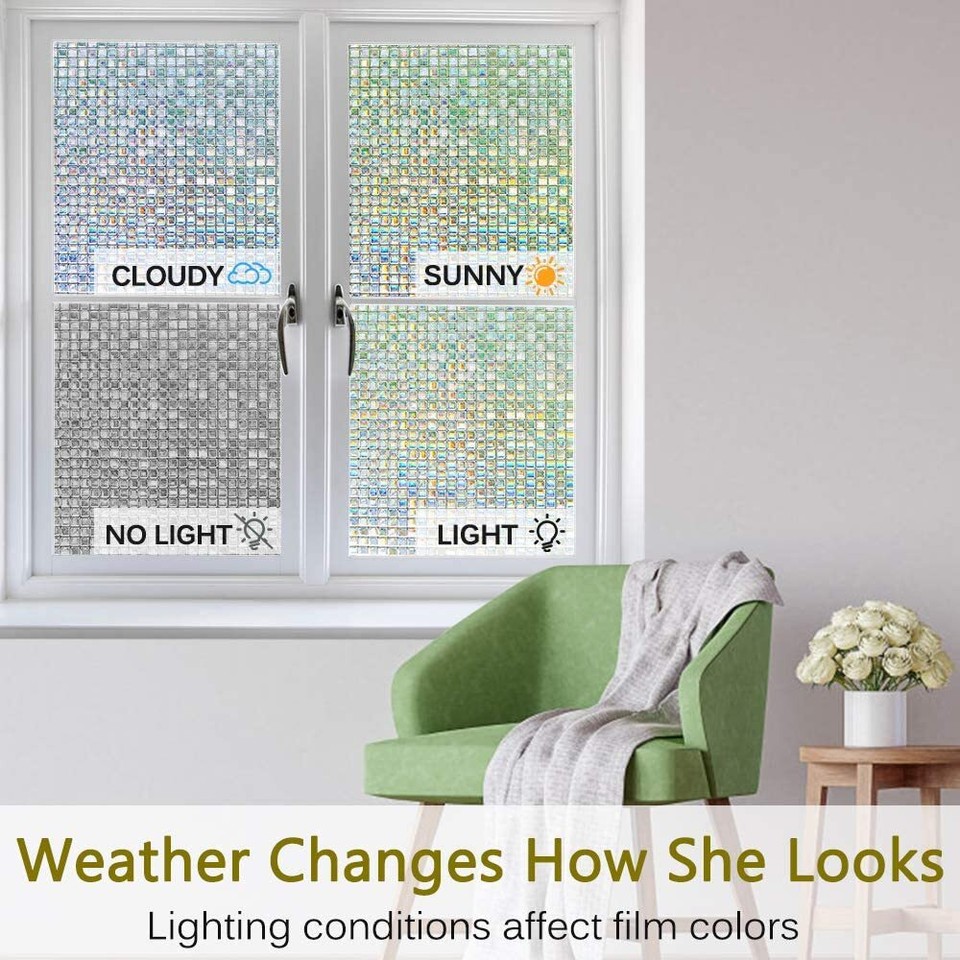 1X Laser Checked Window Film Static Cling Shiny Decorative Glass ...