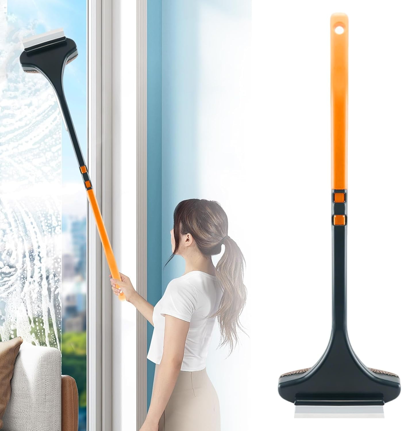 Dual-Sided Window Screen Cleaner Tool with Extendable Pole for Glass ...