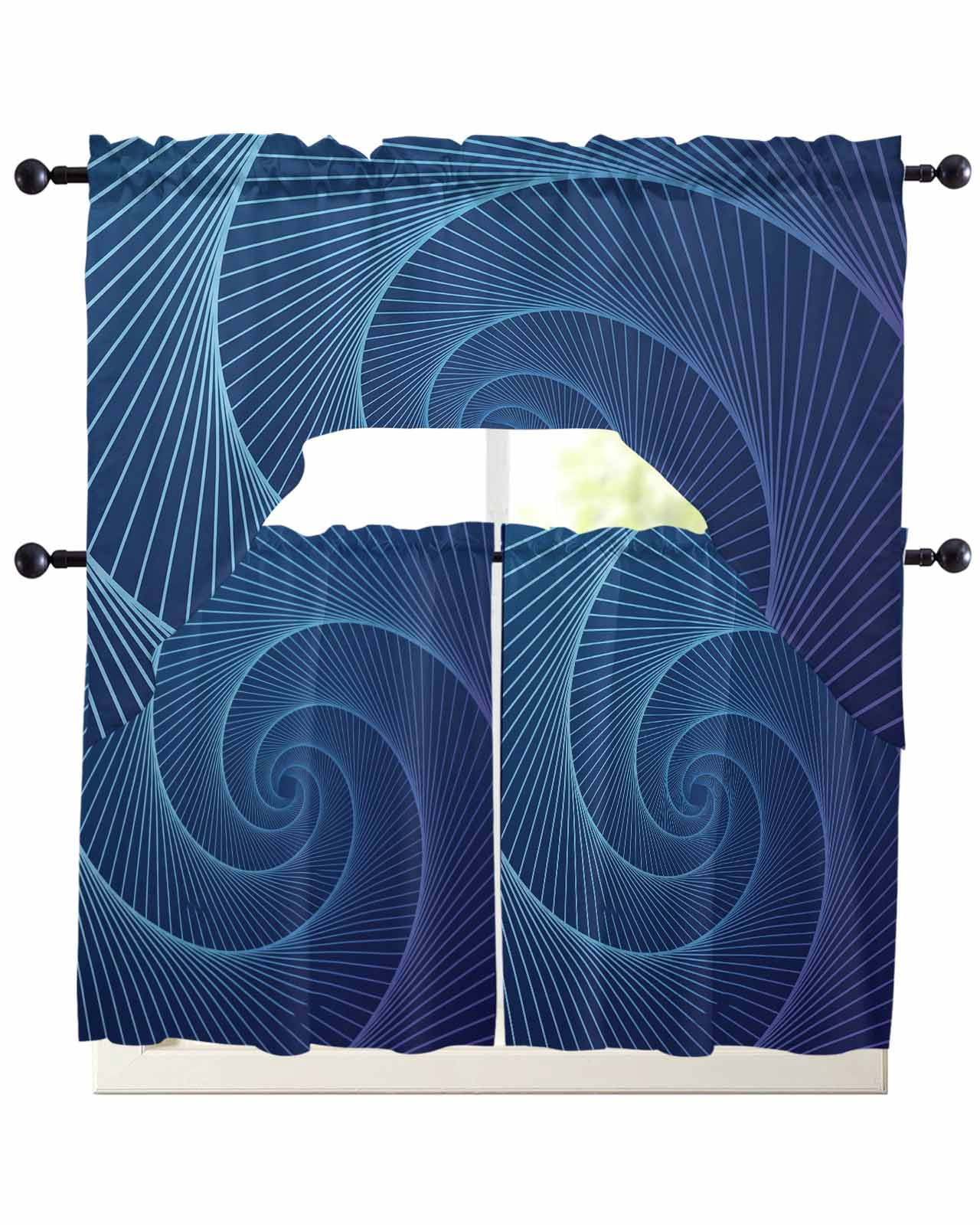 Abstract Swag Valance for Window, 3 Piece Blue Stripe Geometric ...