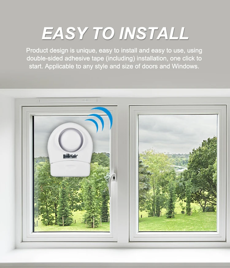 2pcs Window Vibration Alarm Sensor 130dB Siren Ultra Slim Window Alarms ...