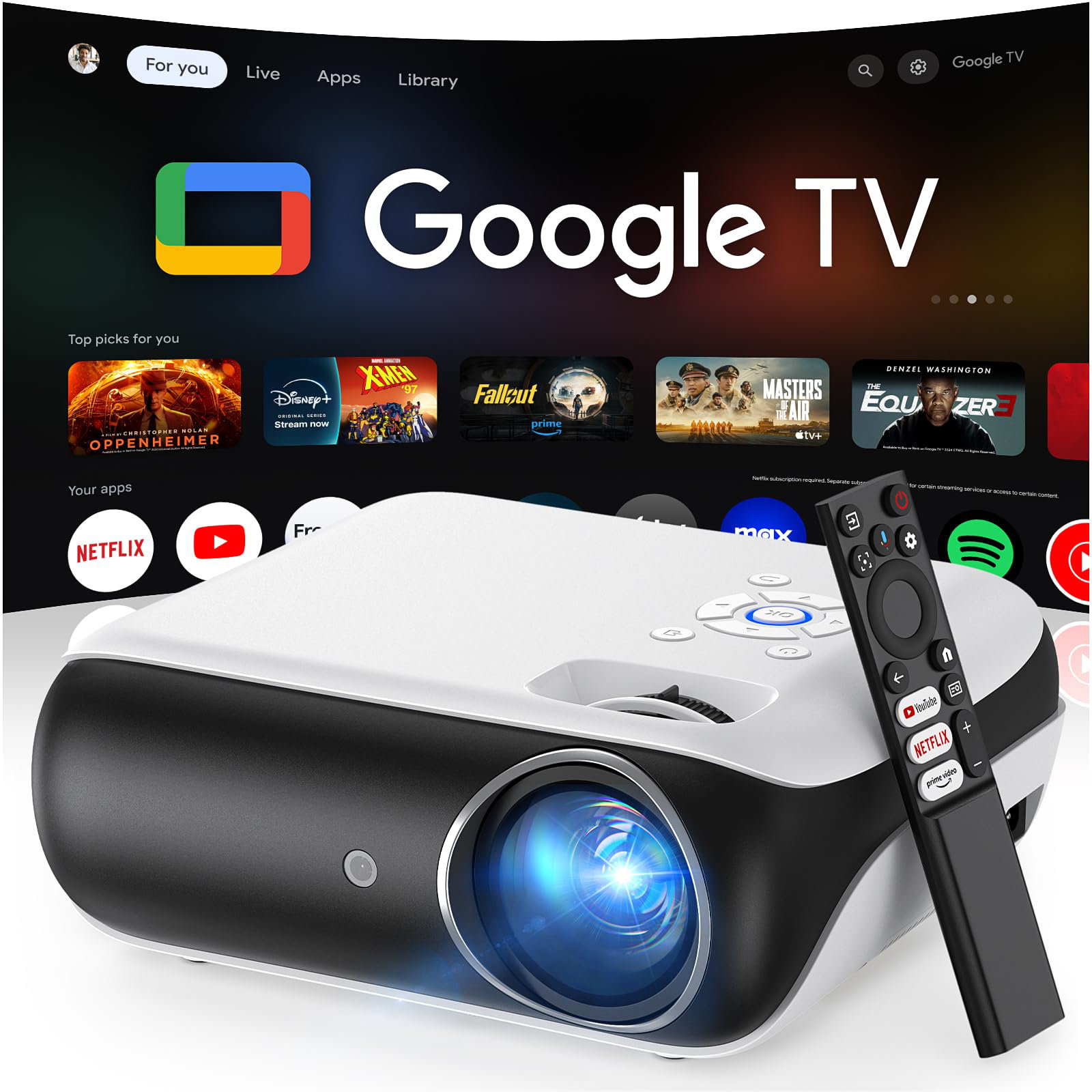 NATIONAL WINDOW Projector, Google TV Projector With Wifi And Bluetooth ...