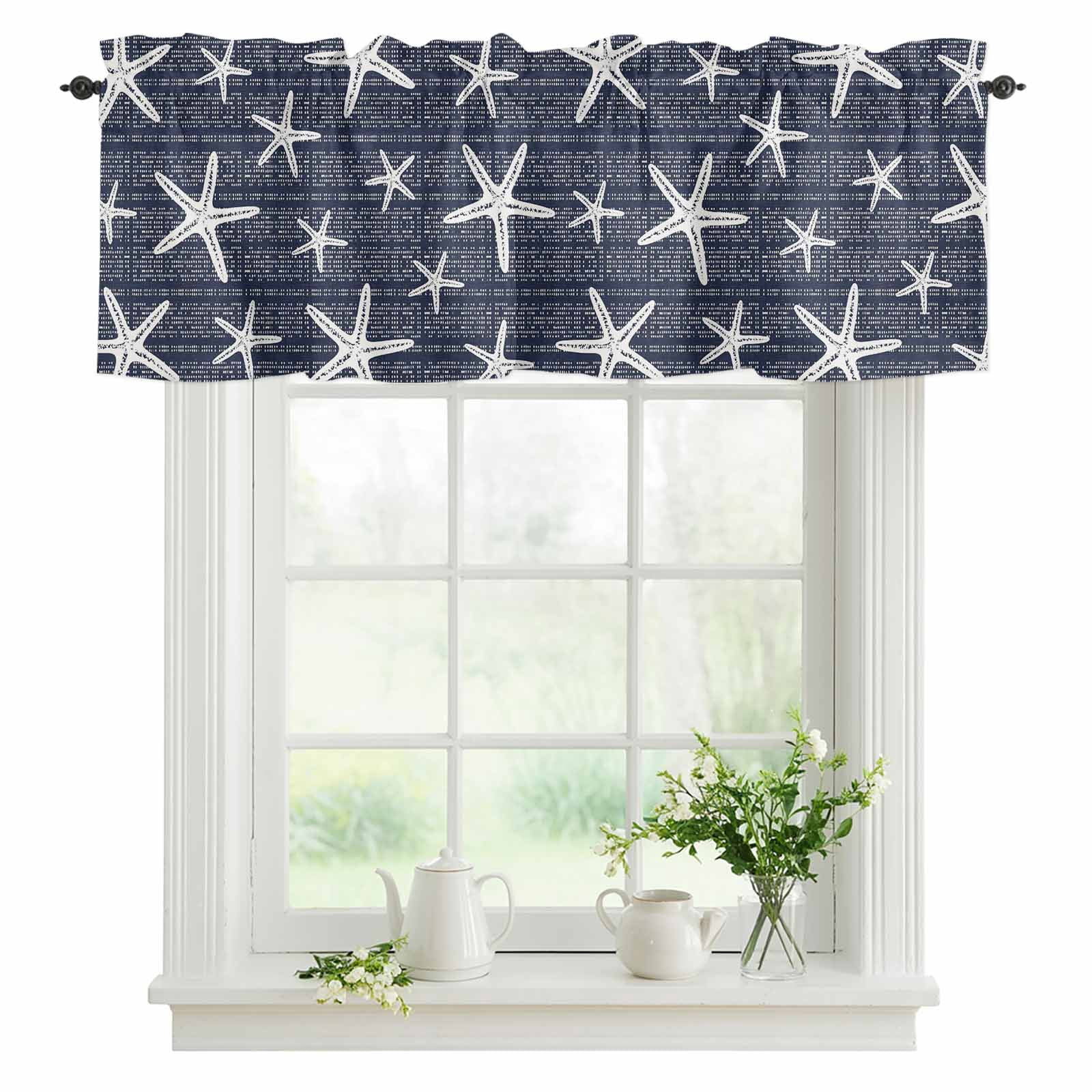 Coastal Starfish Valances for Windows, Rod Pocket Kitchen Valance ...