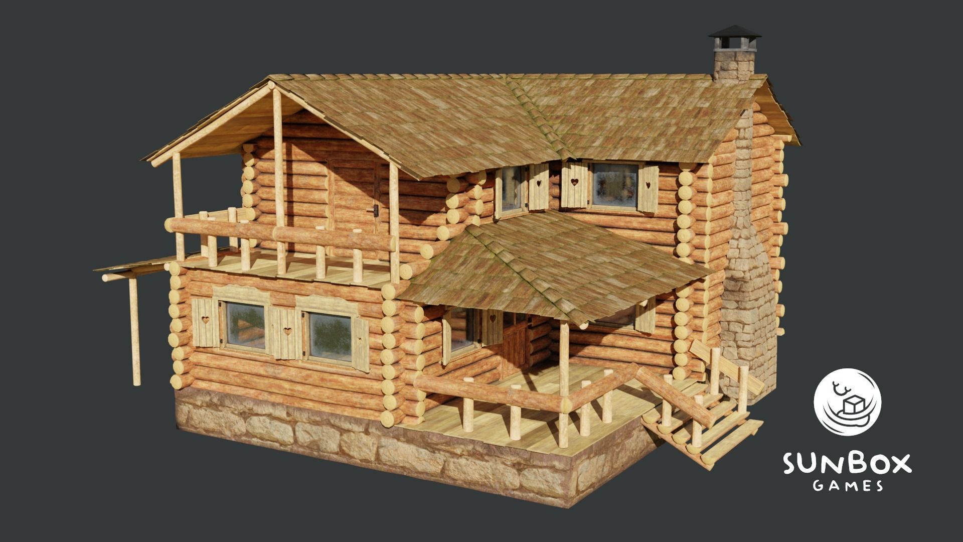 3D model Large Log Cabin with Interior Fireplace Doors and Windows VR ...