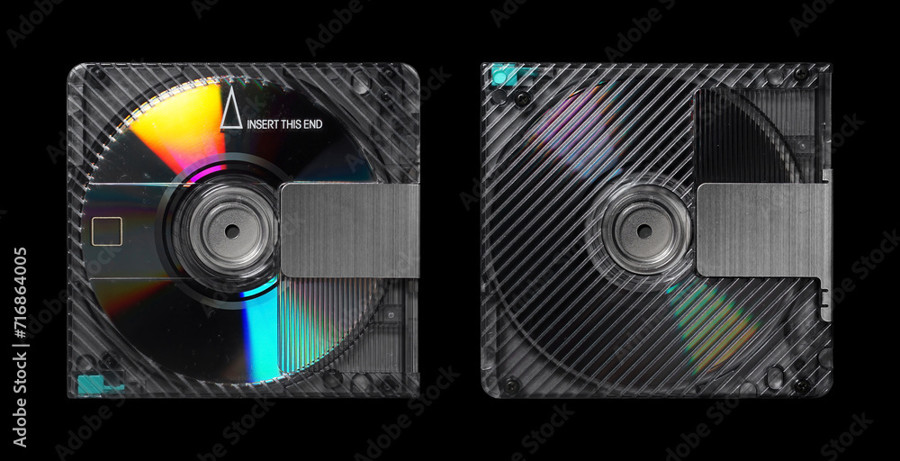 MiniDisc front and back isolated on black. MiniDisc mockup Stock Photo ...