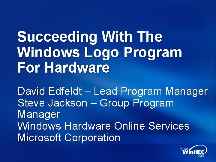 PPT - Windows Logo Program For Hardware To Windows Vista and beyond ...