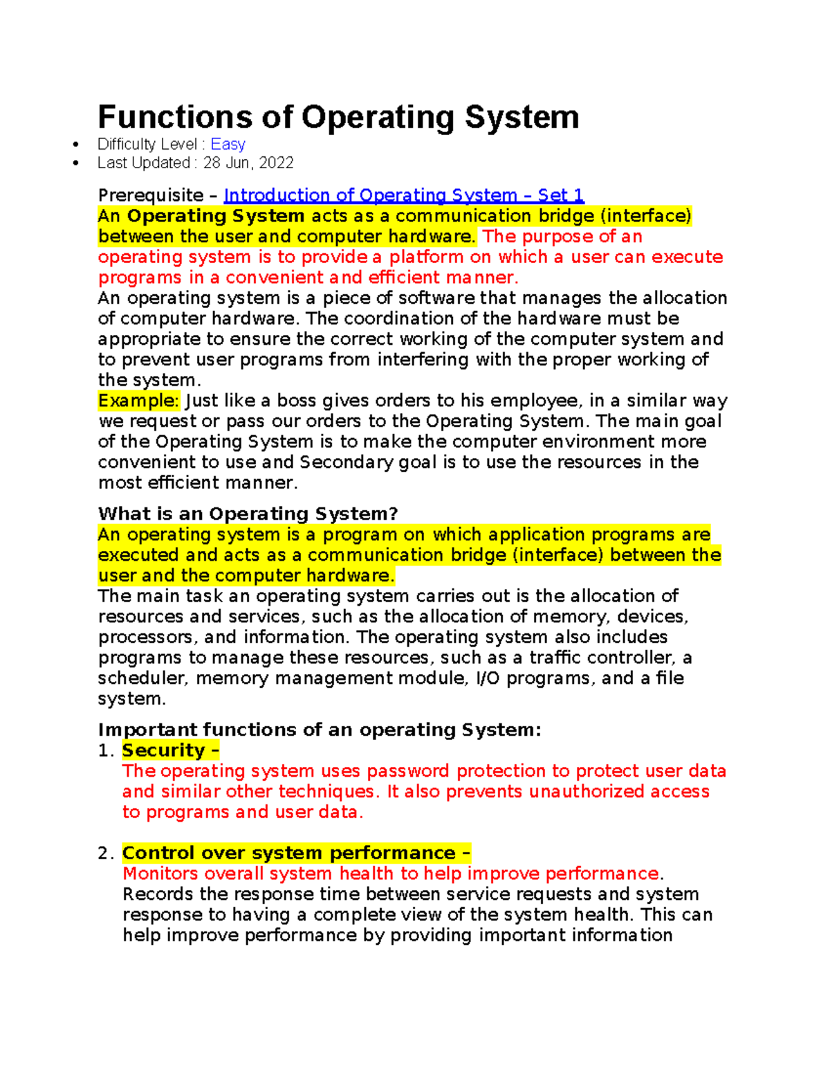 Functions of Operating System: Overview and Key Roles in OS - Studocu