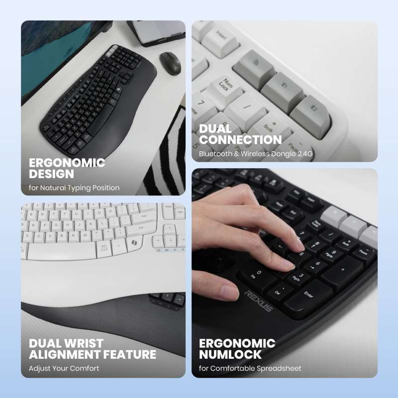 Promo Rexus Ercho Kl280 Keyboard Wireless Ergonomic With Ai Shortcut ...