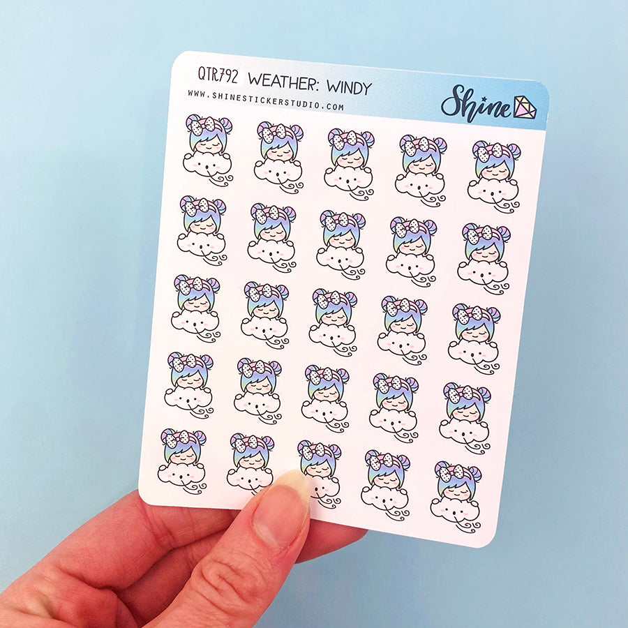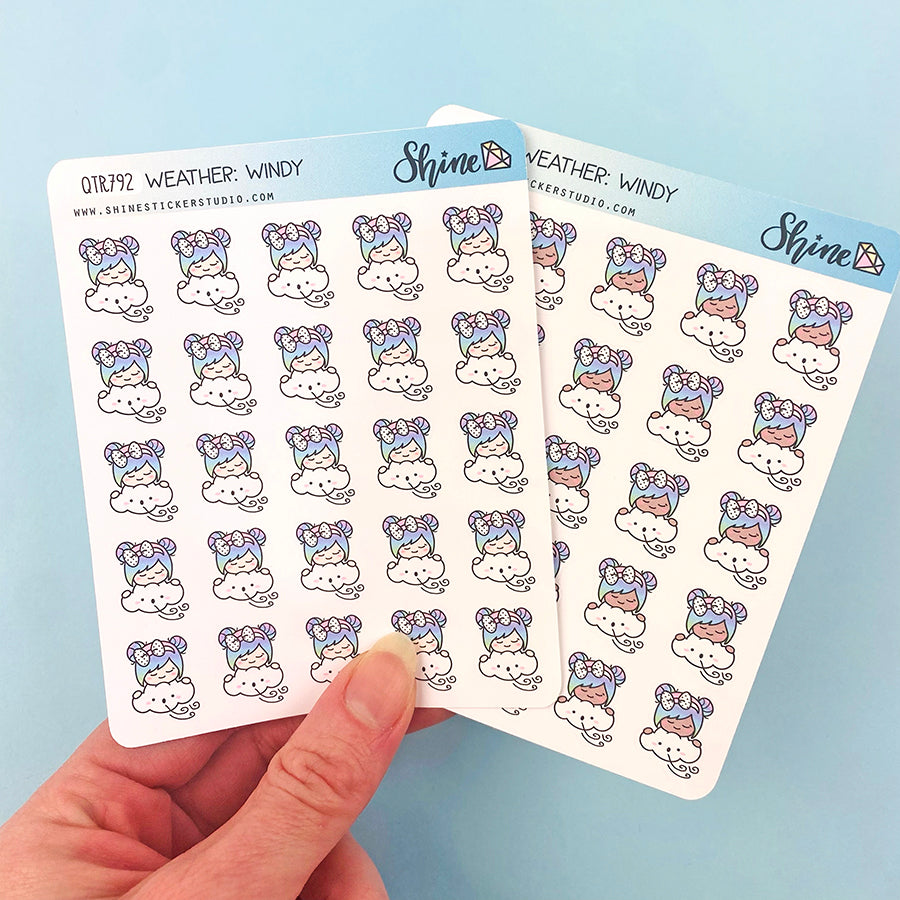 Windy Sticker Sheet | Cute Weather Planner Sticker Windy Icon Sticker ...