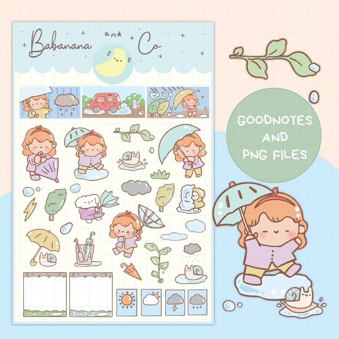 Windy Day Digital Stickers Goodnotes Stickers Cute Hand Draw Digits ...