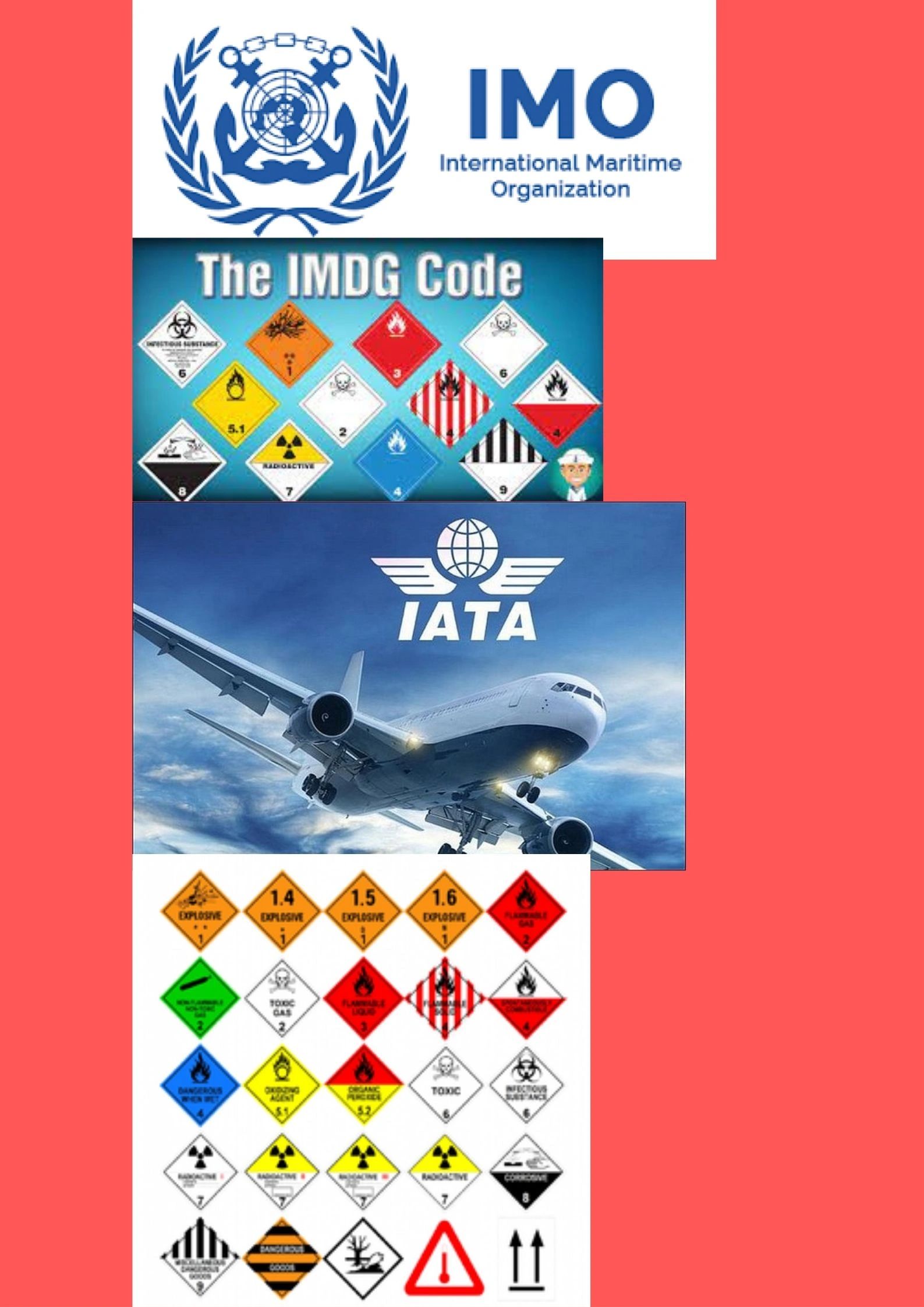 IMO and IMDG Code for Sea. IATA and DGR for Air.