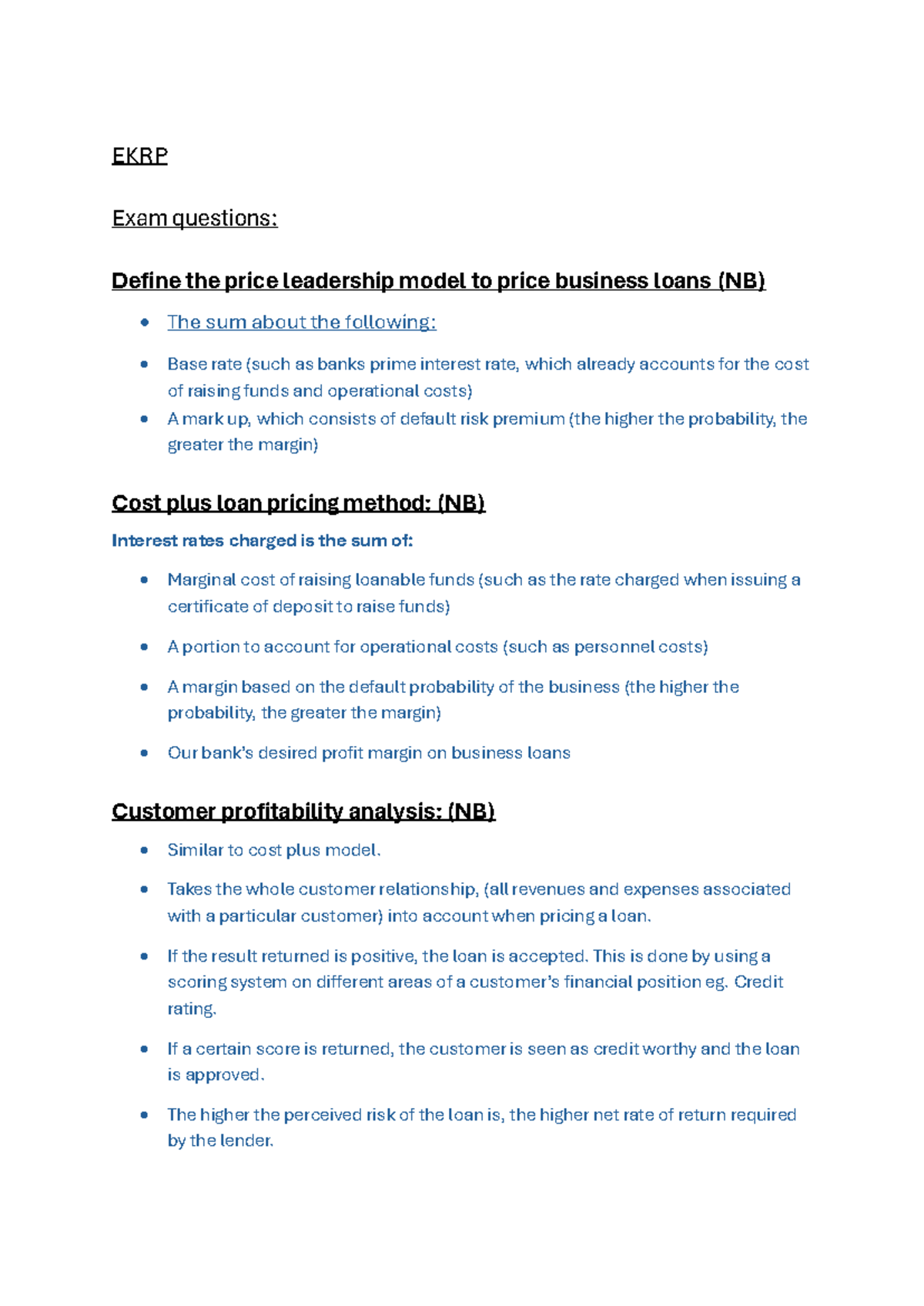 EKRP Test 4 Summary: Price Leadership Model & Loan Pricing Strategies ...