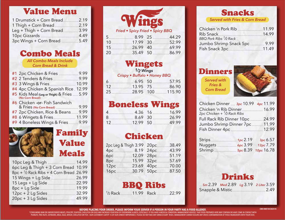 Restaurant Wing Menu, Hot Wings, Buffalo Wings, Family Meals
