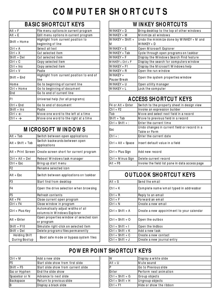 Computer shortcuts | Computer shortcuts, Computer keyboard shortcuts ...