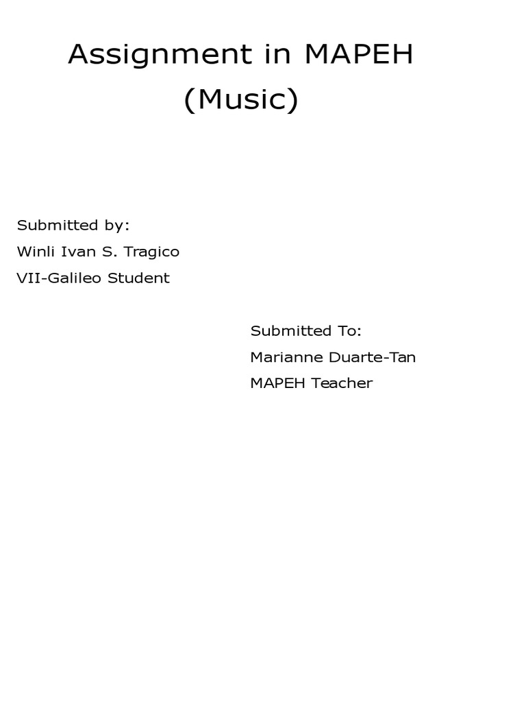 Assignment in MAPEH (Music) : Submitted By: Winli Ivan S. Tragico VII ...