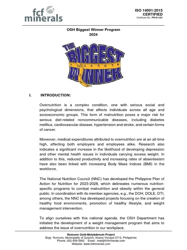Program Proposal - OSH Biggest Winner Program | PDF | Obesity ...