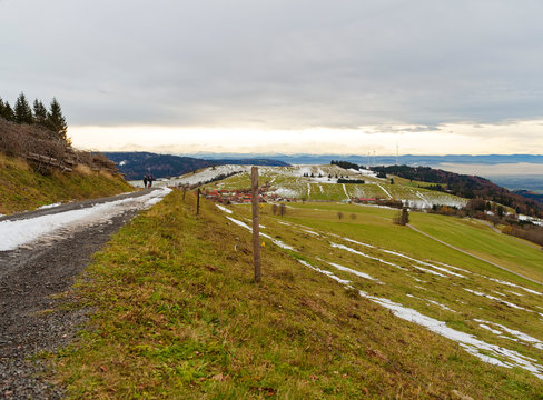 aerial fields and winrad on a rubble mountain Stock Photo - Alamy
