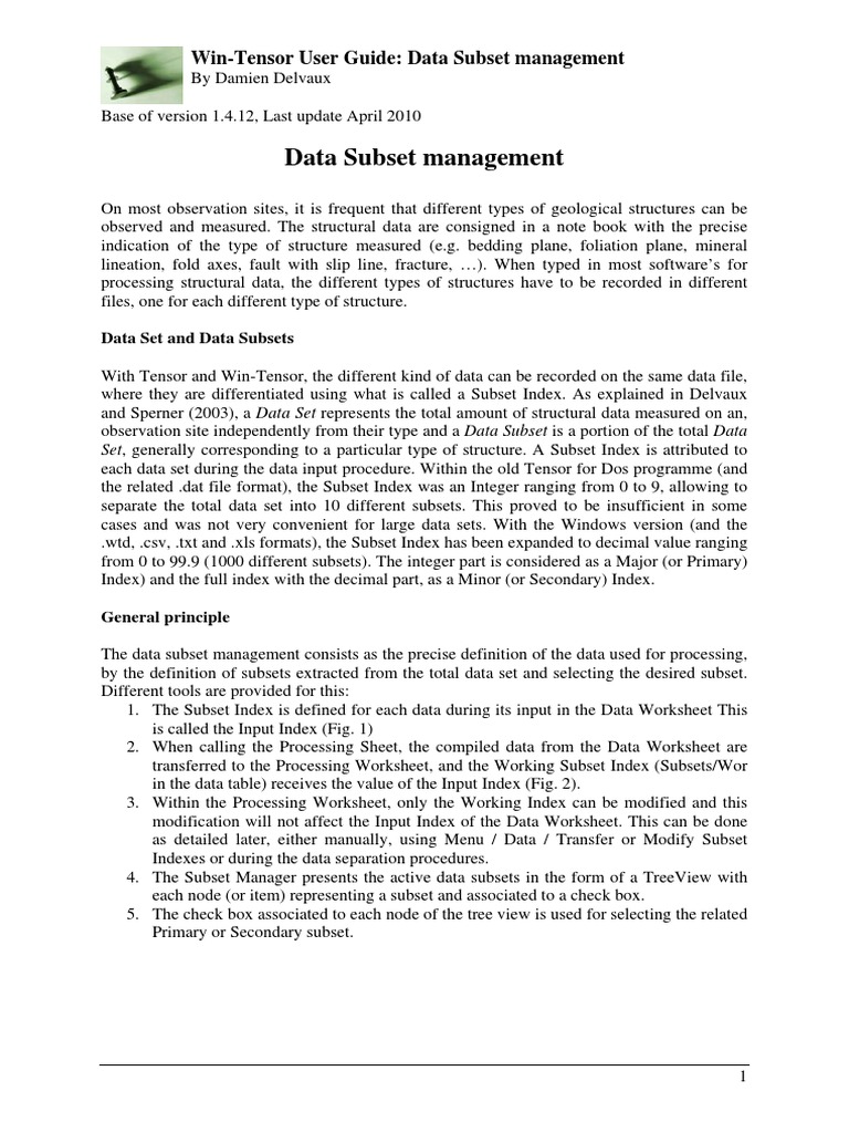 Win Tensor-UserGuide Subset-Management PDF | PDF | Database Index ...