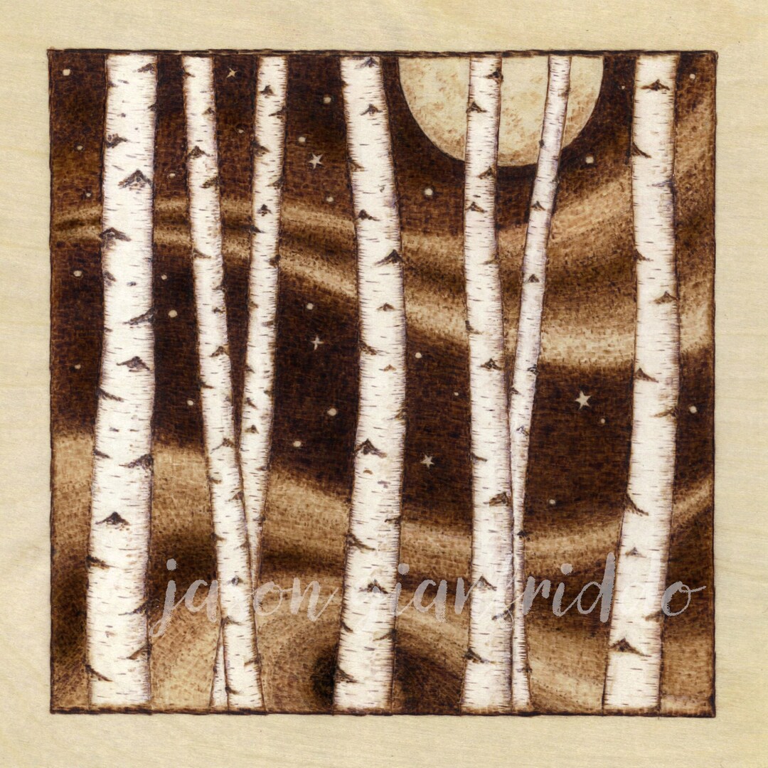 Peaceful Pine and Birch - Wood Burning Pyrography This scenic view of a ...