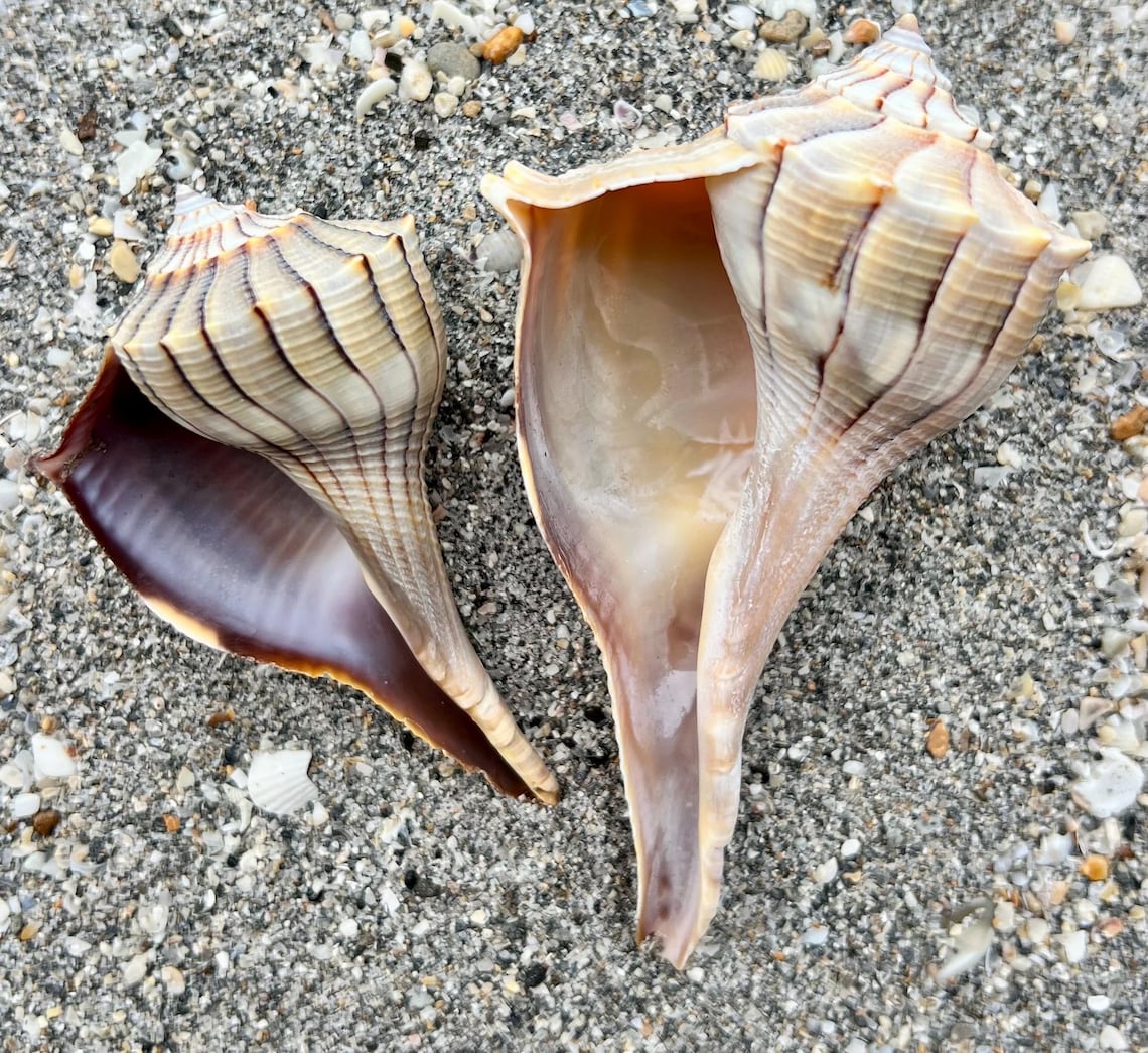 Beautiful Lightning Whelk Shells- Set of 2, Collectible Shells ...