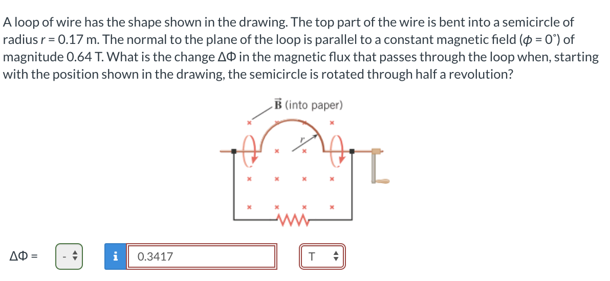 A loop of a wire has the shape shown in the drawing. The top part of ...