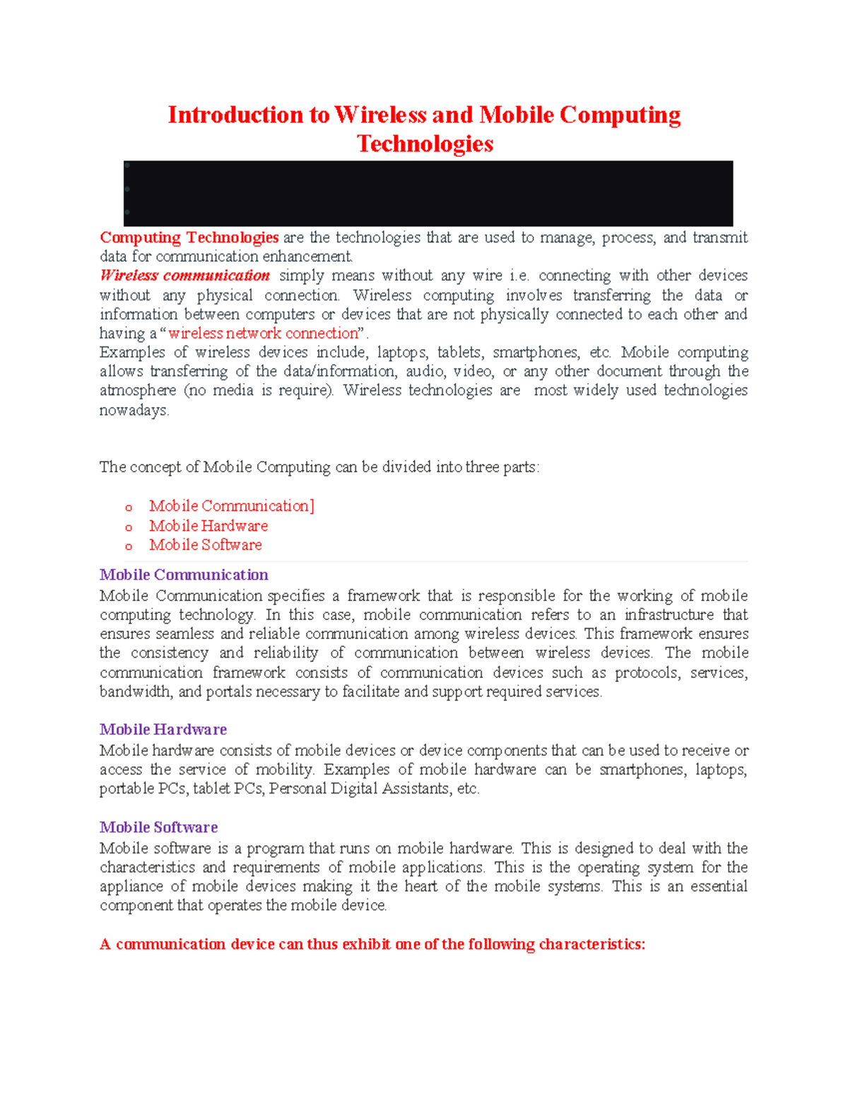 Topic 1 - mobile computing - Introduction to Wireless and Mobile ...