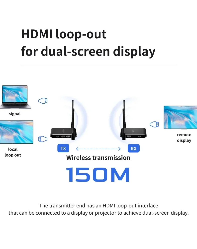 Wireless HDMI Transmitter and Receiver 150M Long Range Wireless HDMI ...