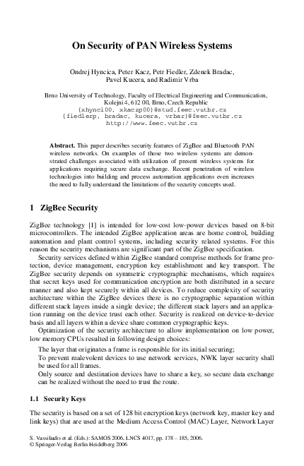 (PDF) On Security of PAN Wireless Systems