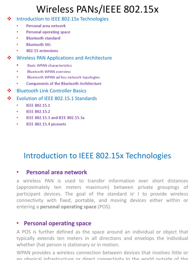 Wireless pan technologies ieee 802.15.x | PPTX