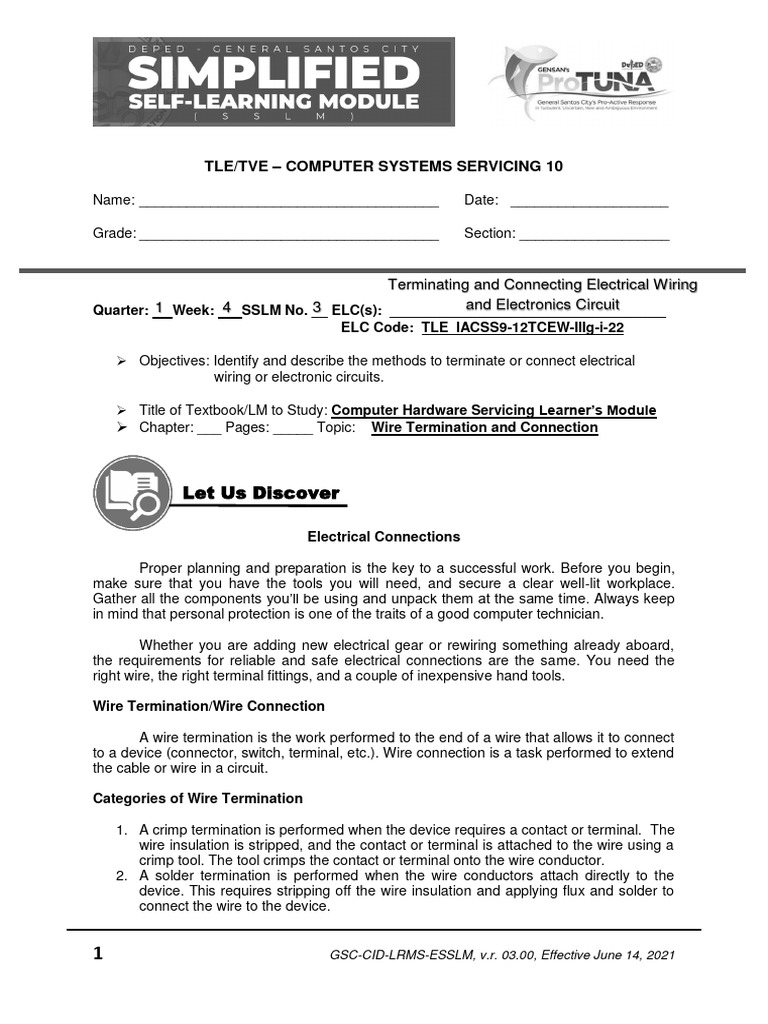 Lesson 3 - LO2-Preparing Electrical Wiring and Circuits | PDF | Wire ...