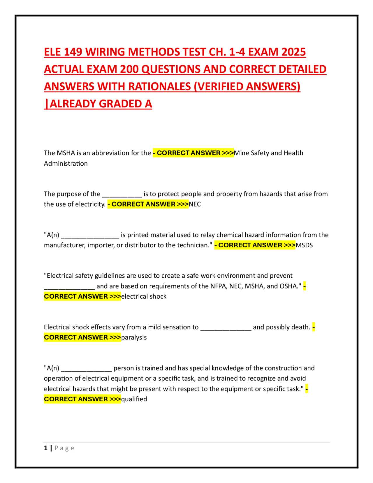 ELE 149 Wiring Methods Test: Chapter 1-4 Exam Review with Verified ...