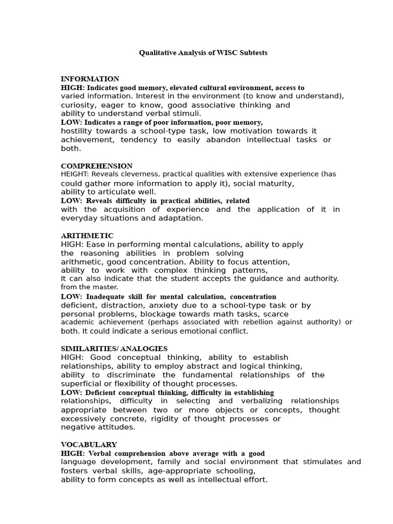 Qualitative Analysis of The WISC Subtests | PDF | Thought ...