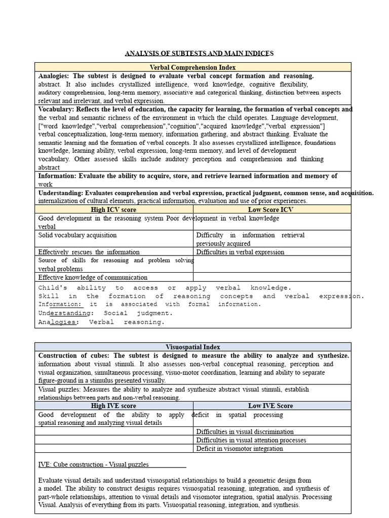 Wisc V - Analysis of Subtests and Main Indices | PDF | Working Memory ...
