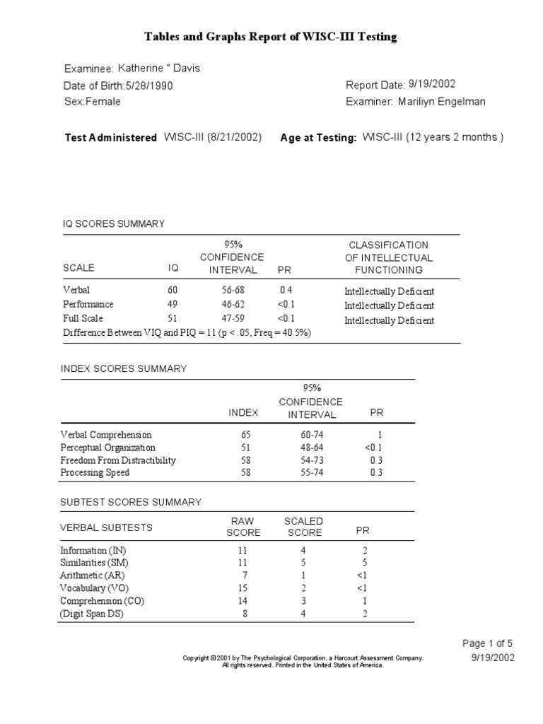 Tables and Graphs Report of WISC-III Testing | PDF | Cognitive ...