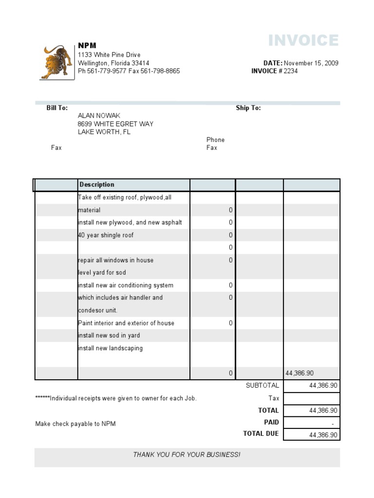Download Home Renovation Invoice Sample - Saldoinvoice for Home ...