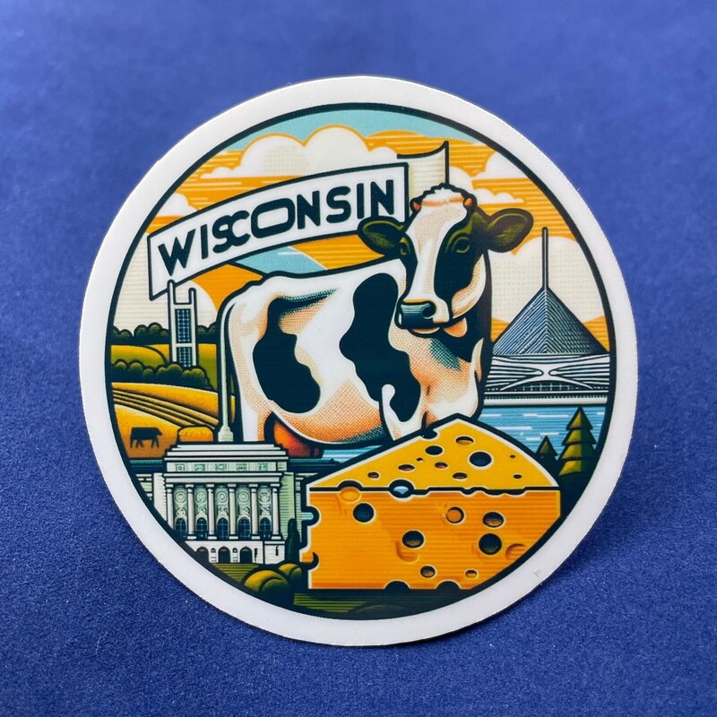 Large Round Wisconsin Sticker – JNJ Gifts and More
