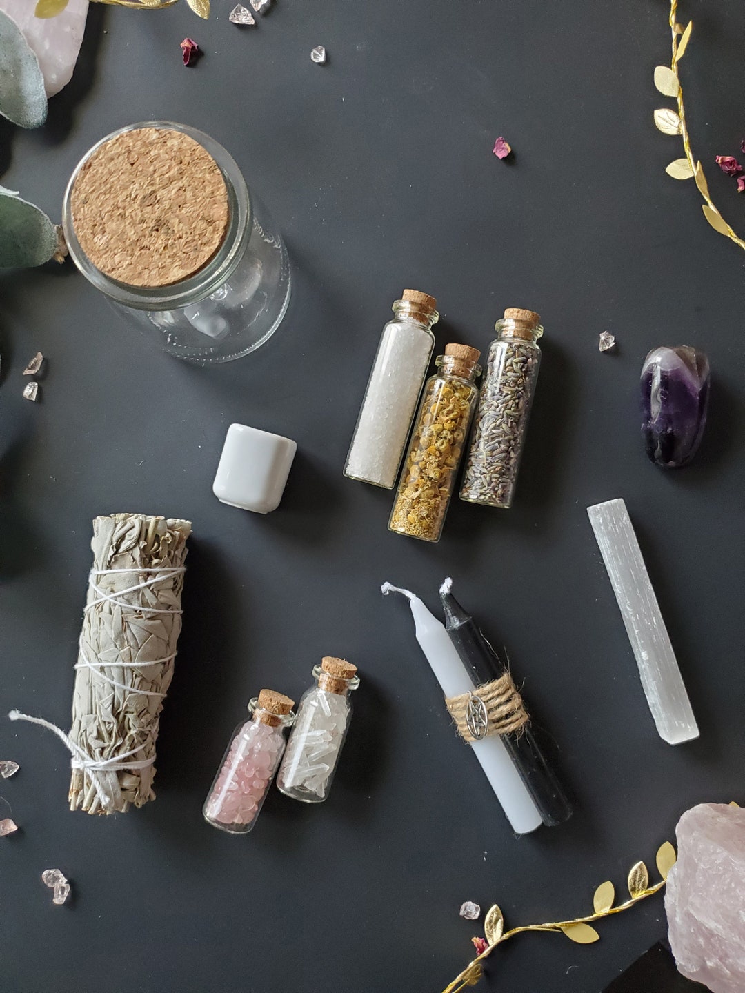 WITCH KIT Beginner Witch Kit Witch Supplies Crystals, Salts, Herbs and ...
