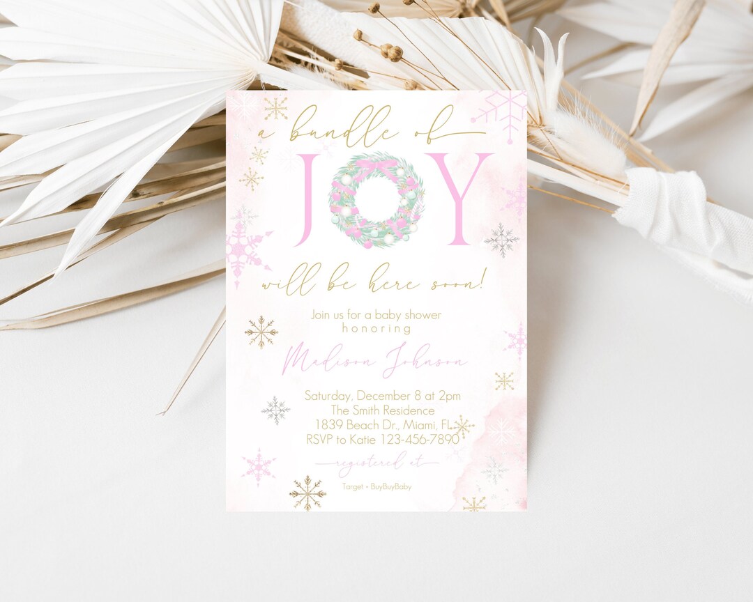 Bundle of Joy Baby Shower Invitation Template, Winter Girl Baby Shower ...