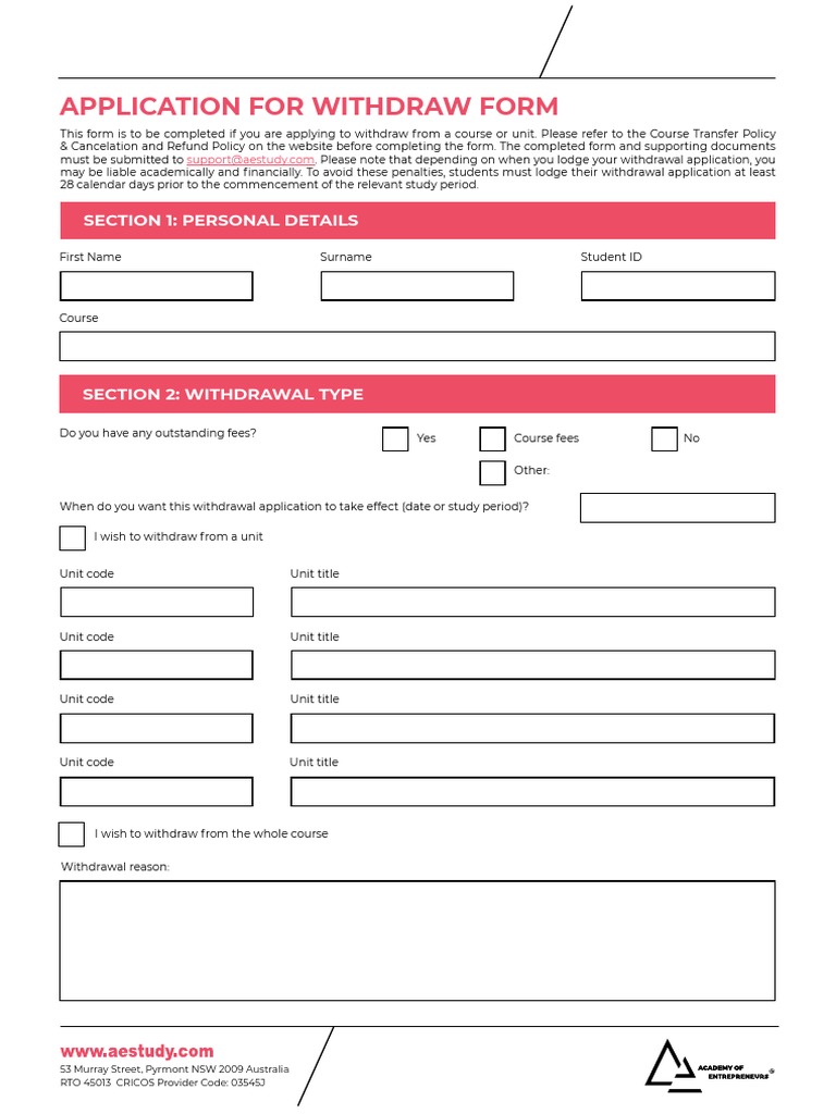 Withdrawal Form | Resources