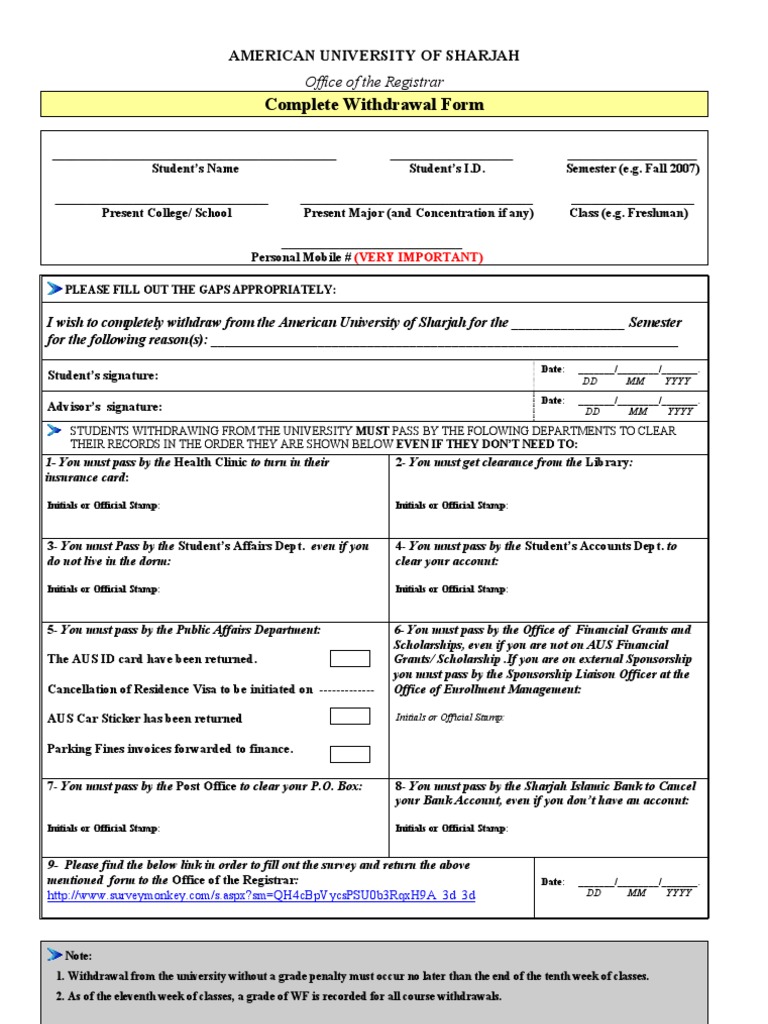 Complete Withdrawal Form and Clearance Procedures from the American ...