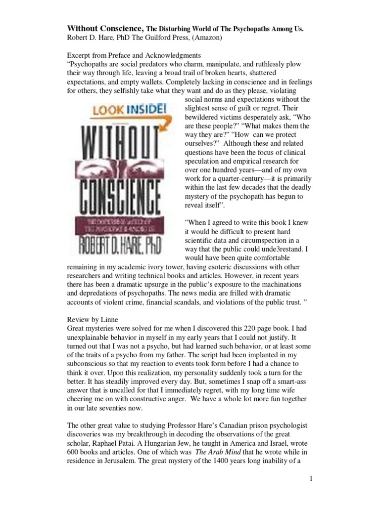 Document 68 .docx - Without Conscience: Psychology Book Review The ...