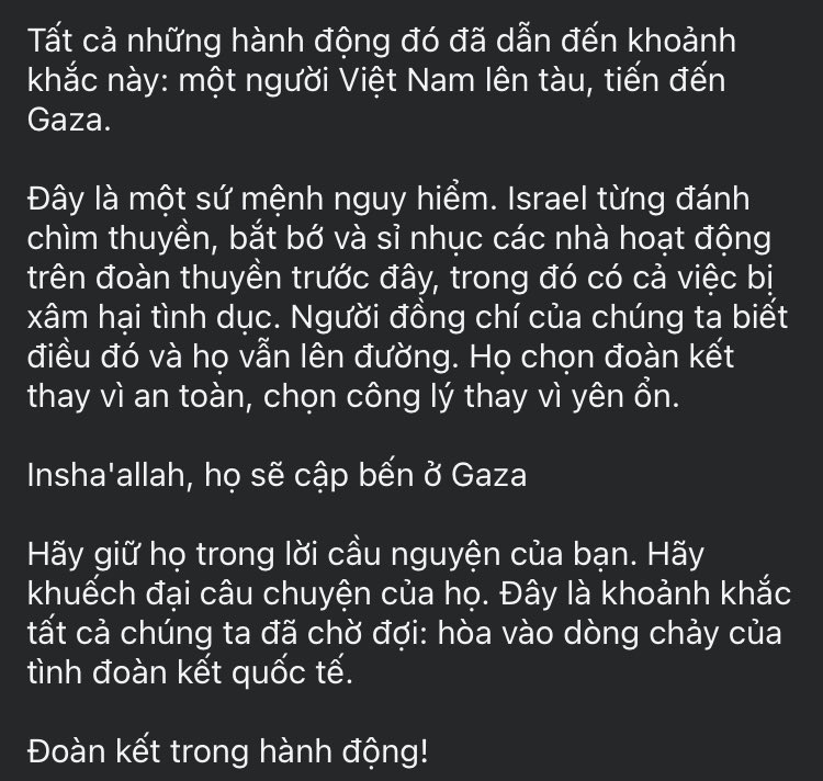 欄 Soon, a delegation from Vietnam shall join the Global Sumud Flotilla ...