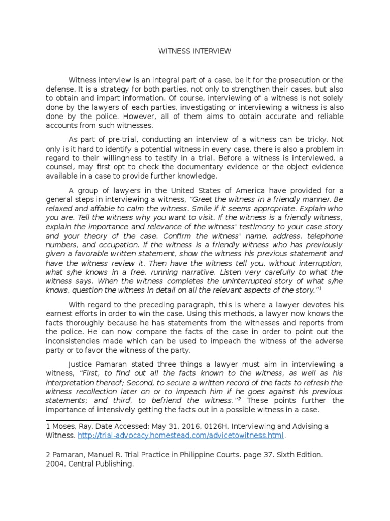 Preparing for a Witness Interview: Key Steps and Objectives | Course Hero