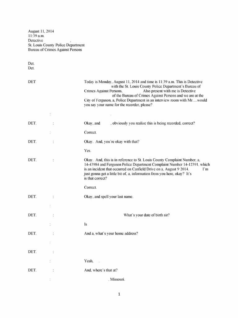 Police Interview - Witness 10 - August 11 2014 | PDF