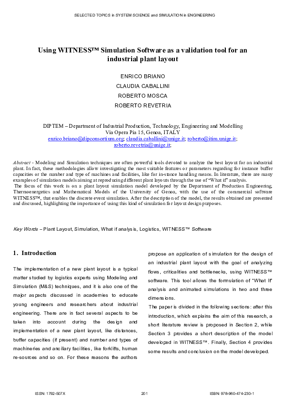(PDF) Using WITNESS™ simulation software as a validation tool for an ...